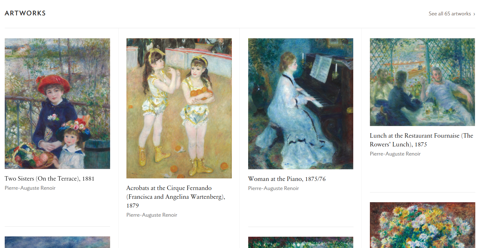 - 예를 들어, 인상주의 화가 르누아르의 작품을 클릭해보세요.